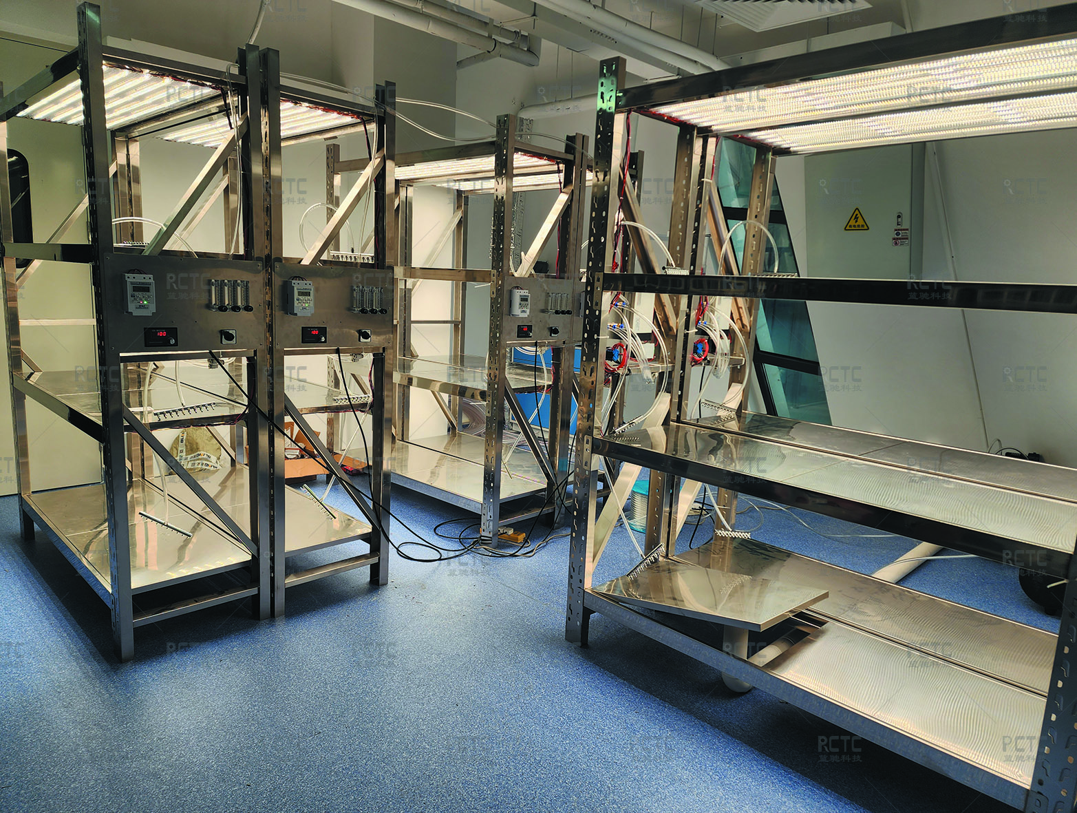 光照培养架也叫组培架,适用于植物组织培养实验中,主要为接种后的组培苗提供正常生长发育所需要的场所,同时也可以用作炼苗的装置。使用光照培养架还可进行探究实验,将光照培养架外部用不透光的黑布罩住,探究光照对植物开花的影响或者培养无光照对植物生长的影响。
